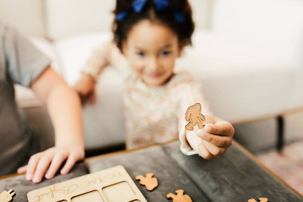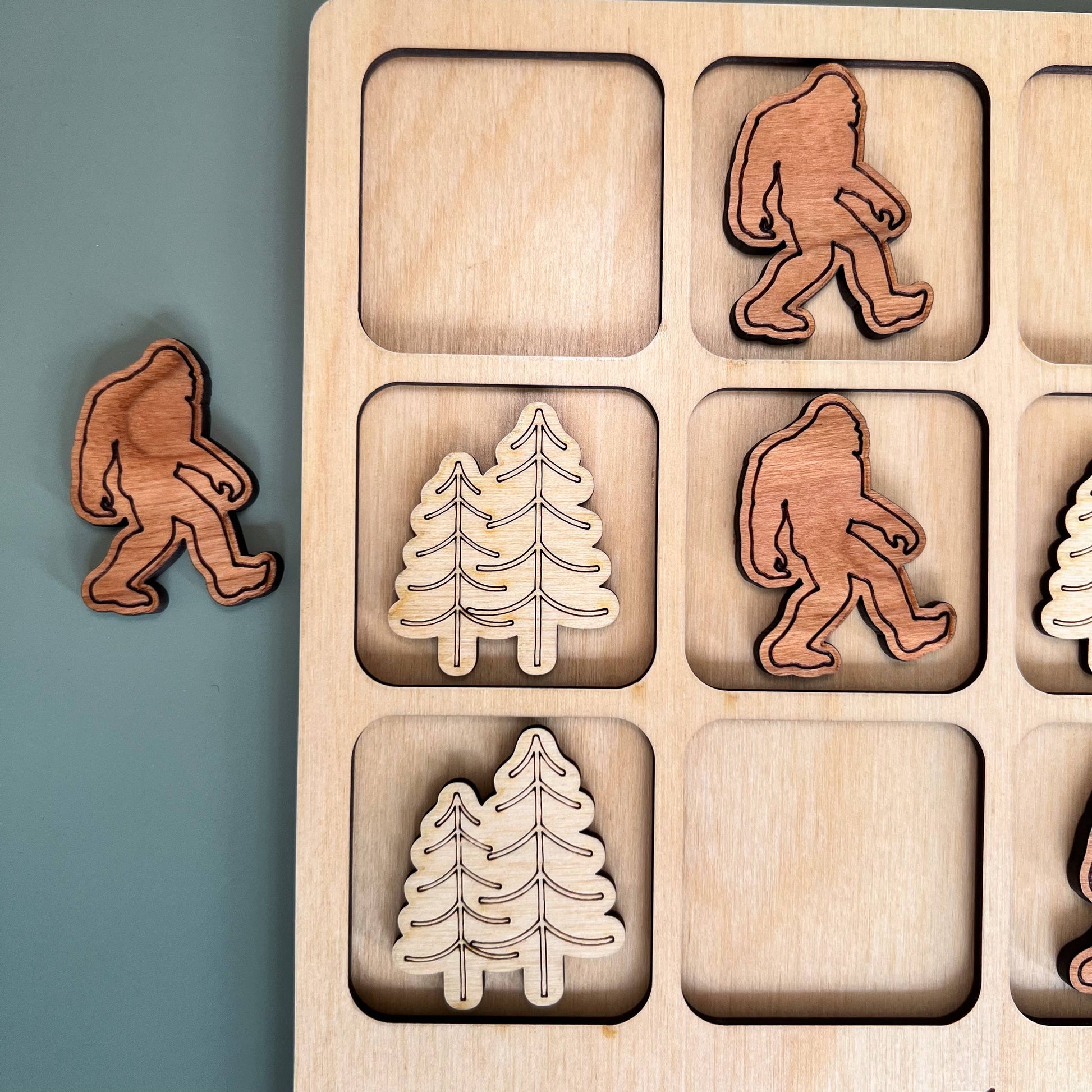 Bigfoot Tic-Tac-Toe Game - Sasquatch Gift - Customizable: Bigfoot + Pine Trees