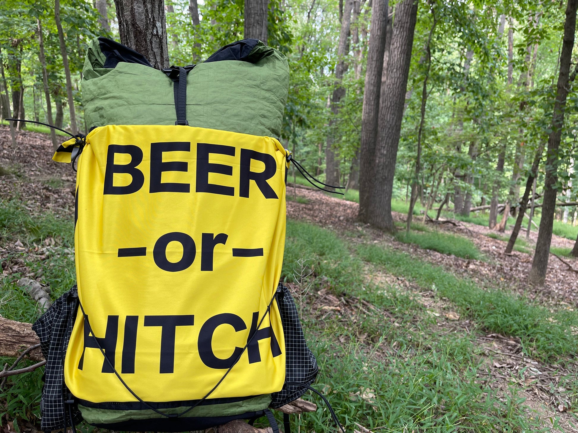 This microfiber polyester bandana is fast drying and machine washable. It features the unofficial signage for all thru hikers looking to Yogi a beer or catch a hitch to town.