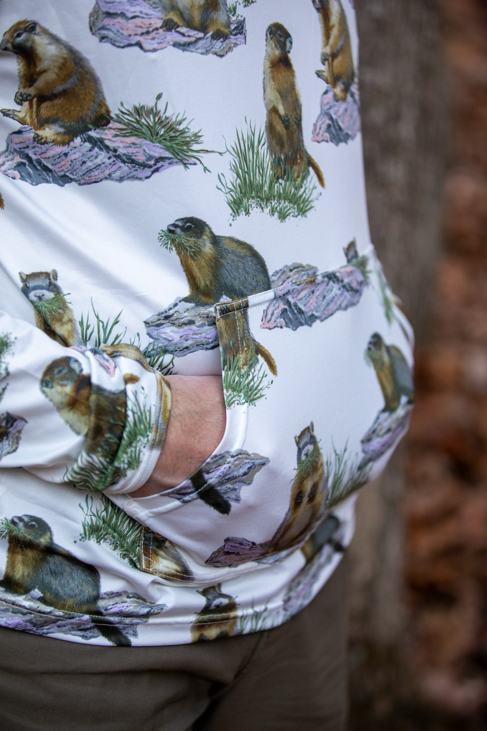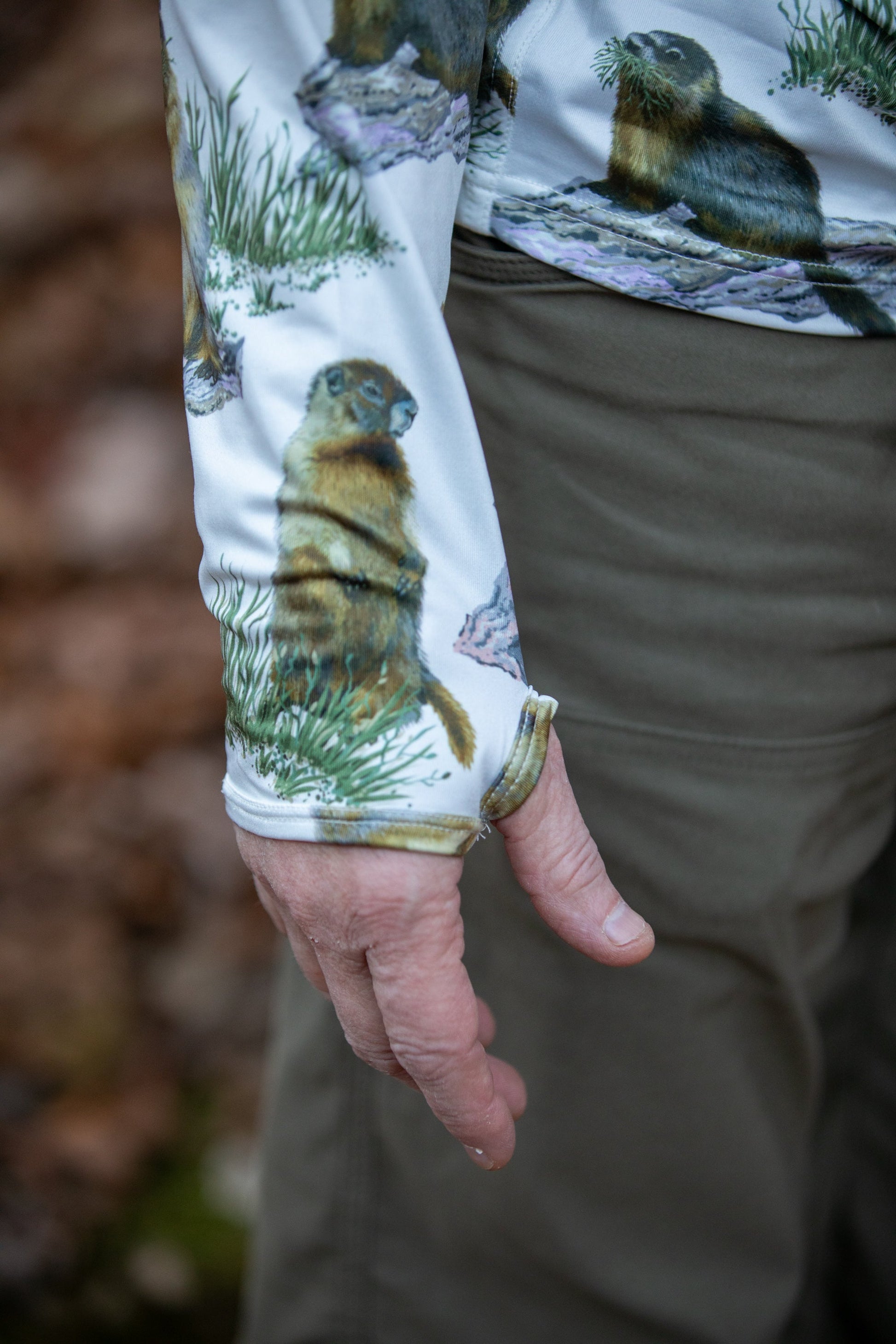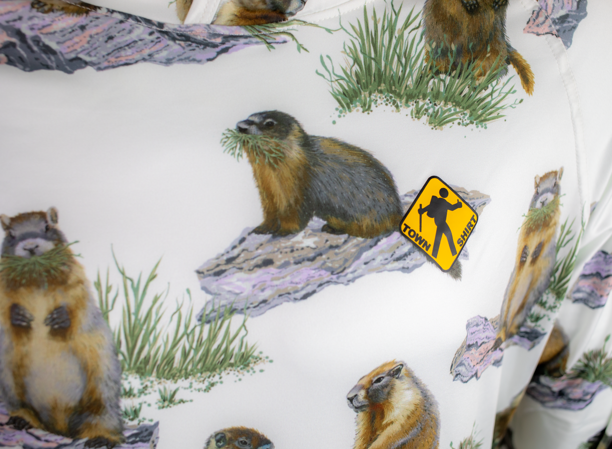 True-To-Trail Print: Inspired by the many many Marmots nicknamed Rock Chuck found on numerous western trails, this print features everyone's favorite hiking mascot.